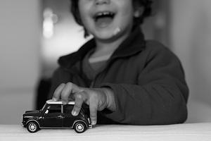This is a picture of my son playing with a miniature of the Mini Cooper.